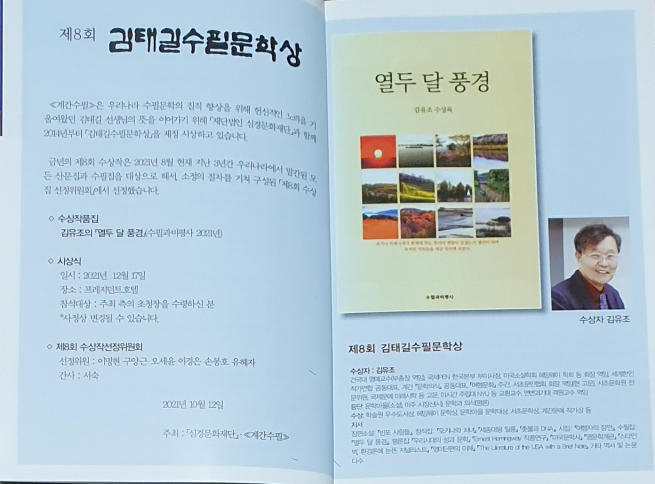 이후문학 기조문 ‘풍경이 파노라마로 펼쳐진 기행수필문학’ 김 유 조 신유목민 시대(new nomad epoch)라는 말도 이제는 낯설지 않은 시대에 우리는 살고 있다. 이 말은 원래 4차 산업의 혁신적 발전에 따른 정보 통신의 확장 공간에서 인류사를 해석하는 데에 주로 쓰이고 있지만, 유목에서 농경생활을 거쳐 오늘날 다시 ‘여행’이라고 하는 보편적 이동을 누리는 현대인의 생태를 지칭하는 측면도 적지 않다. 거의 반세기 전 저명한 미디어학자 마셜 맥루한이 "미래의 사람들은 매우 빠르게 이동하면서 전자제품을 사용하는 유목민이 될 것이다. 세계 각국을 돌아다니지만 어디에도 집은 없을 것"이라고 예언한 말에는 다소 과격함이 들어있었지만 지금 우리는 그와 유사한 생활 패턴을 영위하고 있는 것도 사실이다. 사실 신..